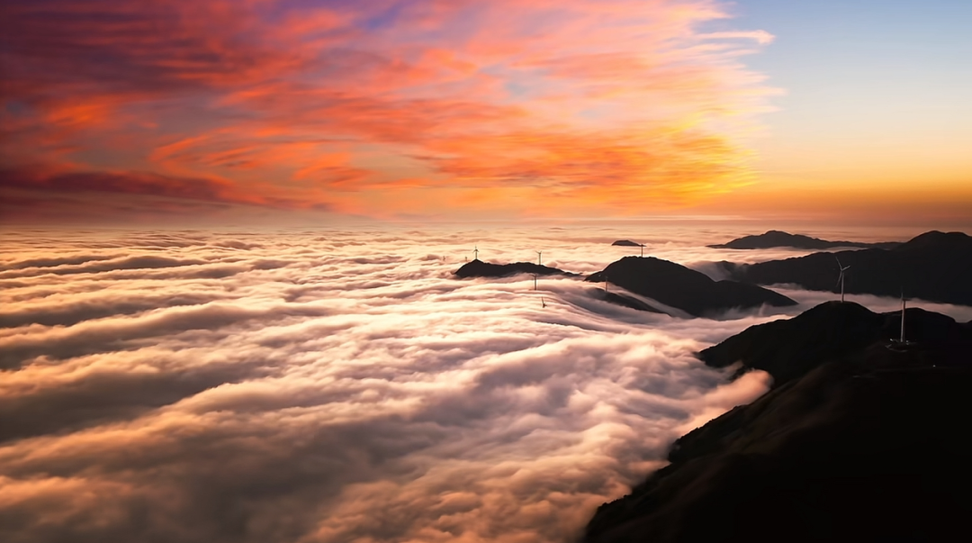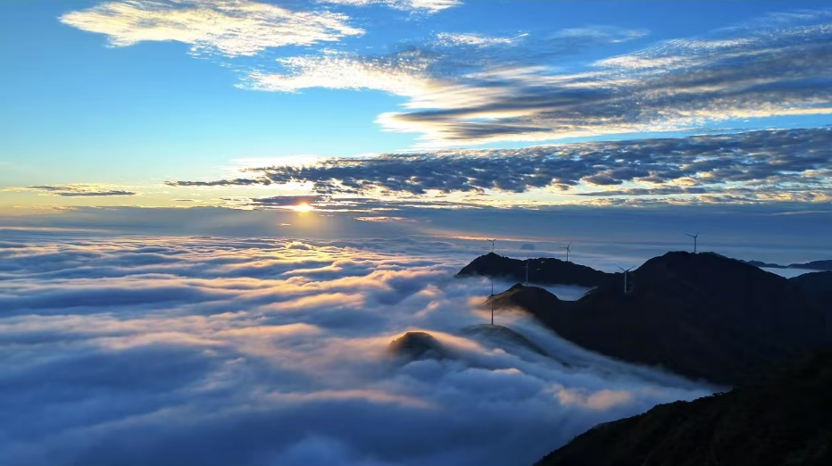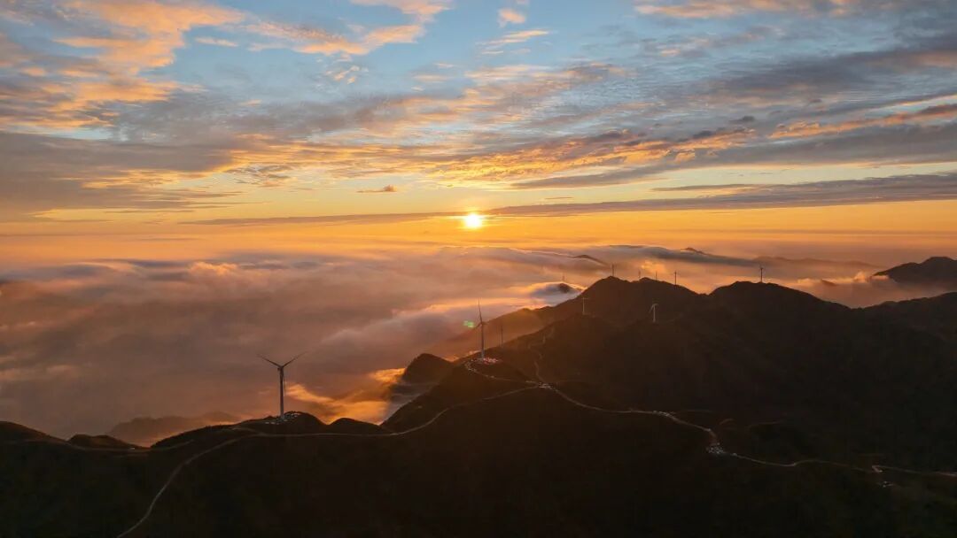 据悉,钱排镇素有“中国李乡”之称,平均海拔高度超500米,秋冬时节昼夜温差大,高山云海景观多发,其中石镬坳被众多游客誉为“广东最美的云海观景点”,近年来游客打卡热度持续升温。石镬坳海拔高度超1300米,周围山峰林立、逶迤连绵,气势雄伟。作为钱排高山风电场的一部分,该景区区域内高低不一的山头“风车”悠悠转动,与翻涌的云海相映成趣,融合景致美不胜收。